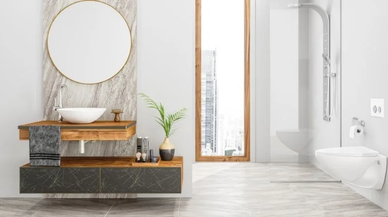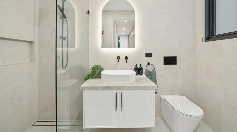 Redefine elegance with radiant marble finishes and subtle lighting accents, creating a bathroom that embodies modern sophistication.