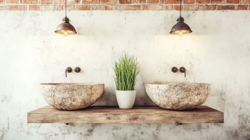 Elevate your bathroom with natural wood accents, handcrafted tiles, and vibrant greenery — creating the perfect bohemian retreat that blends warmth, artistry, and tranquility.